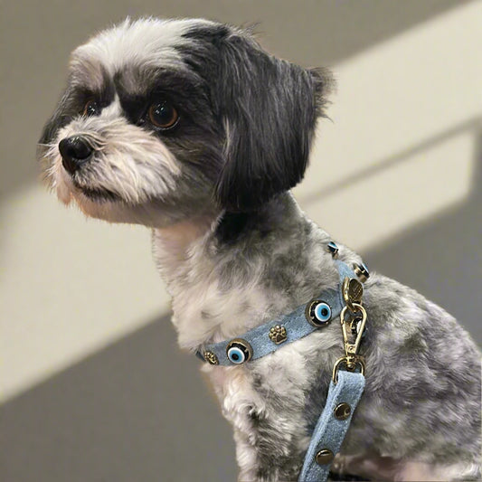 Süet Nazar Boncuklu Köpek Göğüs Tasması | Azure 🧿