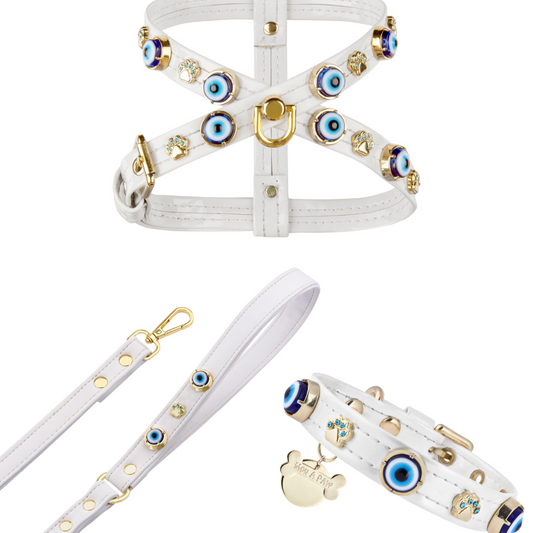 MAUVAIS Nazar Boncuklu Beyaz Köpek Gezdirme Kayışı 🧿
