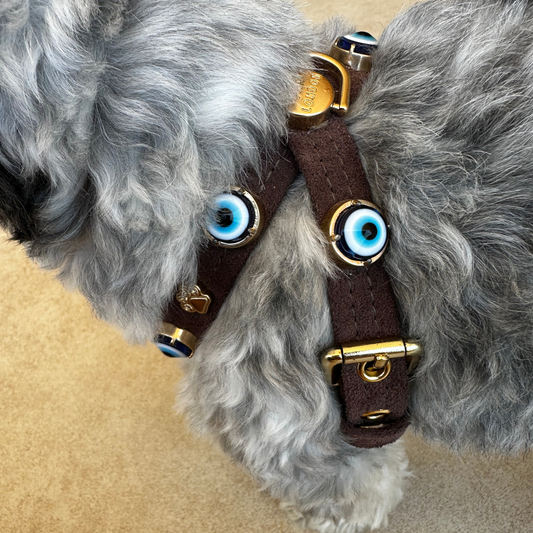 Süet Nazar Boncuklu Köpek Göğüs Tasması | Bitter 🧿
