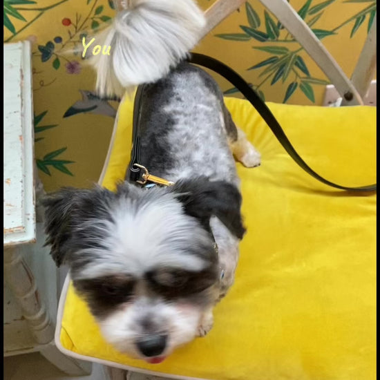 Yumuşacık Siyah vegan dostu faux deri üzerine cam nazar boncukları ve altın kaplama minik patiler ile zarif bir şekilde süslenmiştir. Bu Harness, hem günlük kullanım için mükemmel bir seçenek sunarken hem de özel günlerde köpeğinizin stilini tamamlamak için benzersiz bir aksesuar olacaktır. Aynı renkteki nazar boncukları ile bezenmiş gezdirme kayışı ile köpeğinizin görünümünü tamamlayabilirsiniz.